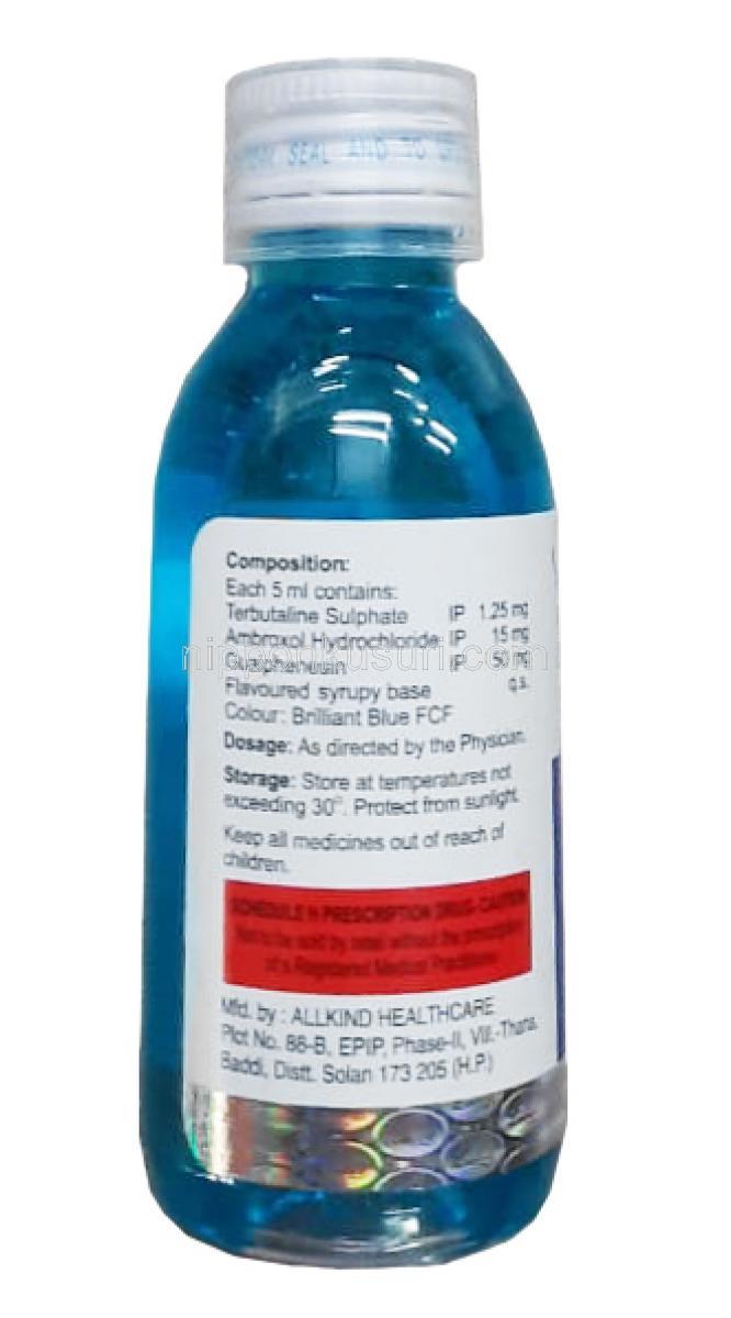 | 含有量 | アンブロキソール 15mg/5ml/ グアイフェネシン 50mg/5ml/ テルブタリン 1.25mg/5ml |