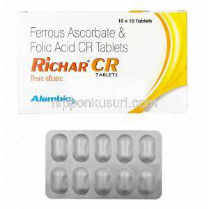 | 含有量 | 鉄 75mg/ 葉酸 1.5mg, 鉄 100mg/ 葉酸 1.5mg |