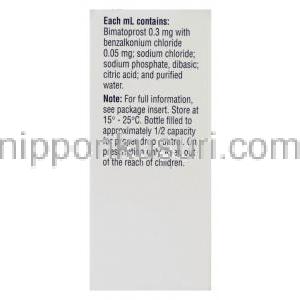 1日1回もしくは医師より指示された使用回数を点眼ください。点眼剤の投与後、約1分間目頭を押さえ薬剤をなじませてください。これには、局所効果を高め、血流に吸収される薬の量を最小限に抑え、体内の他の場所への任意の悪影響を最小限に抑える作用があります。皮膚に繰り返し接触するとその部分の体毛の成長を促しますので、目、頬や皮膚の育毛を必要としない領域に薬が触れないようにご注意ください。お肌についた余分な目薬は拭き取ってください。