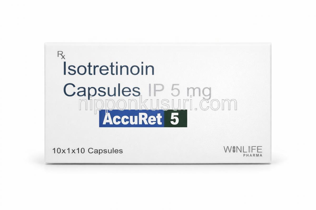 アキュレット 5, イソトレチノイン 5 mg, 製造元:WinLife Pharma, 箱表面