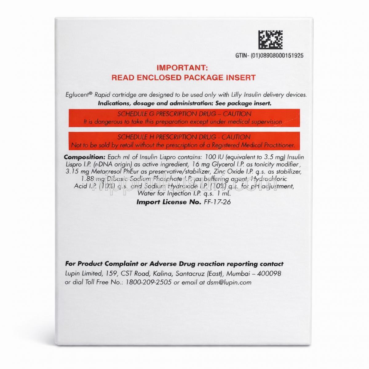 | 含有量 | インスリンリスプロ 25 % , インスリンリスプロ 50% , インスリンリスプロ 100IU/ mL |