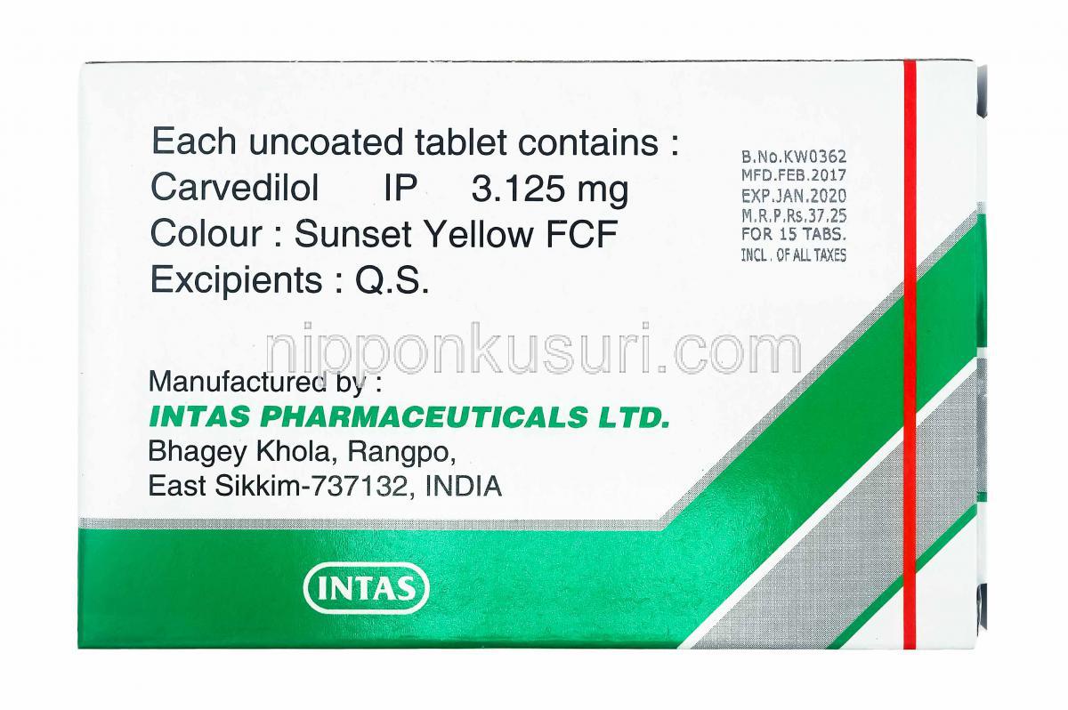 含有量 3.125mg, 6.25mg, 12.5mg, 25mg