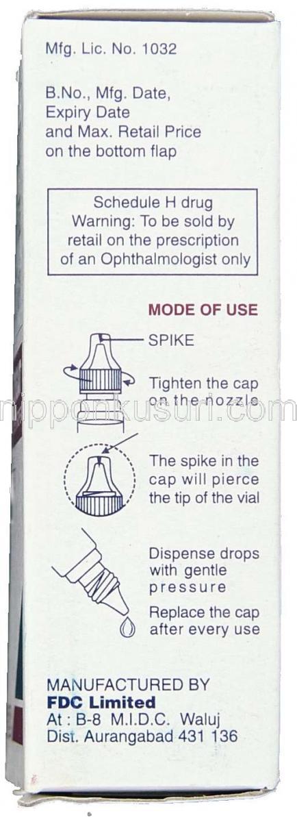 | 製造元 | アラガン, Microvision, Cipla, Intas Pharma, Ajanta Pharma, FDC, Micro Labs, Sun Pharma その他ジェネリック各社 |