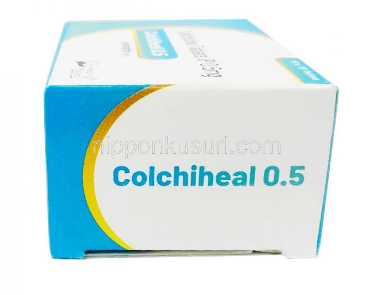コルチヒール, コルヒチン 0.5mg, 製造元:Healing Pharma India Pvt Ltd, 箱表面