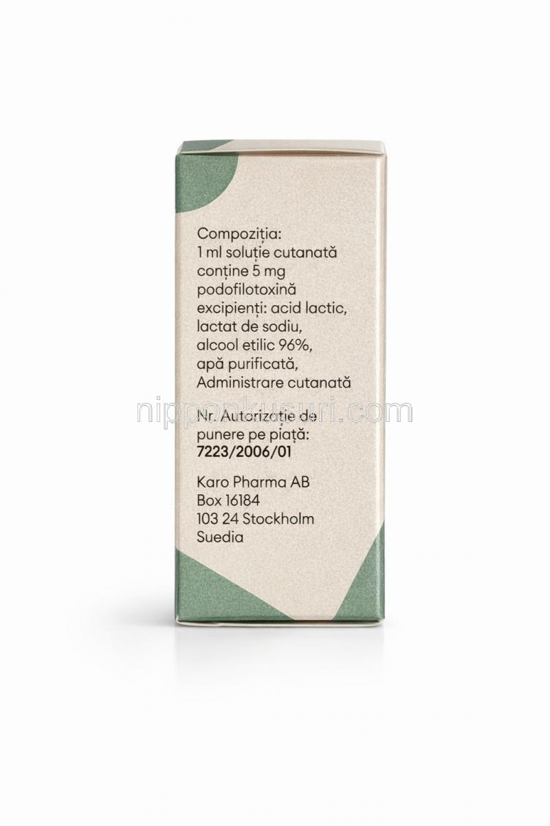 | 有効成分 | ポドフィロトキシン Podophyllotoxin Solution |