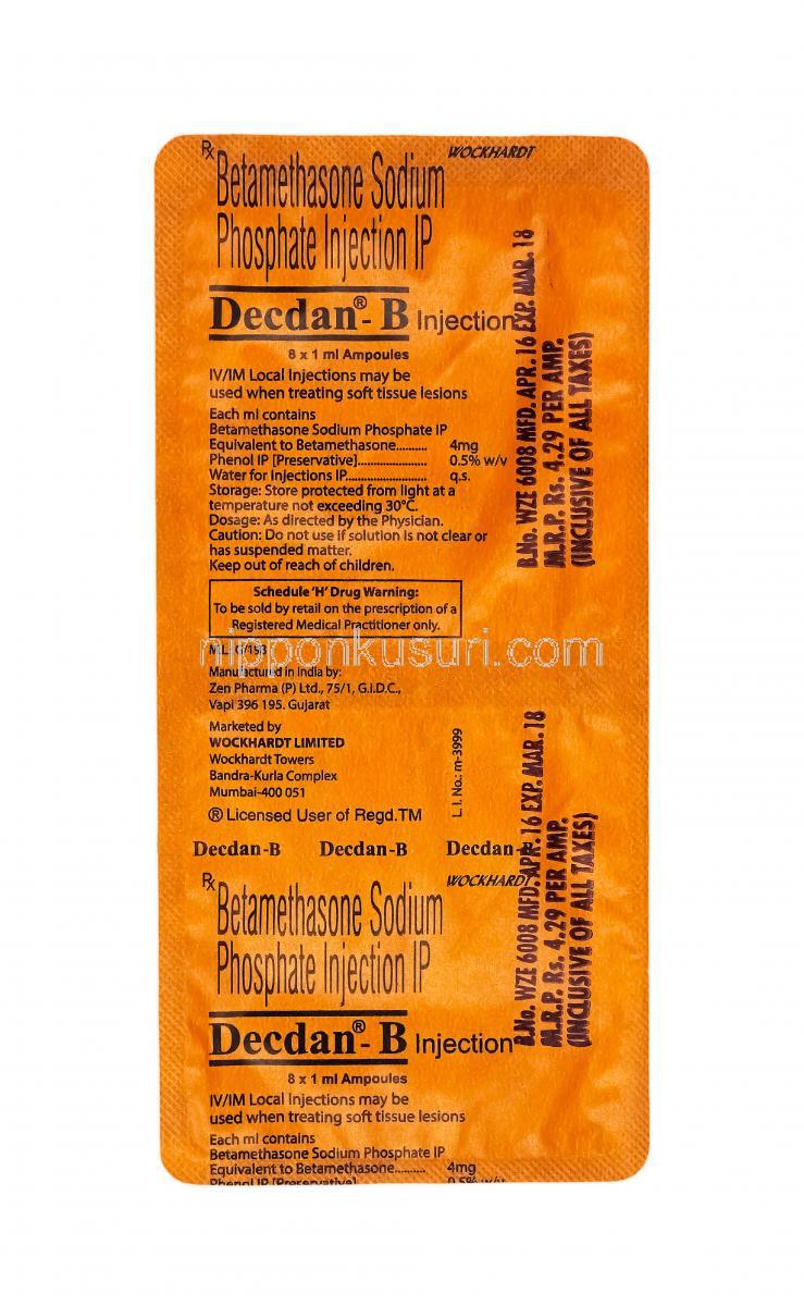 | その他のブランド名 | デクダン B 注射, Decdan B Injection |