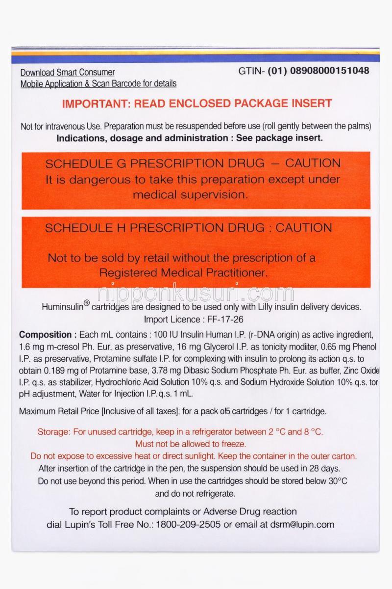 | 同義語 | ヒューミンスリン 注射カートリッジ |