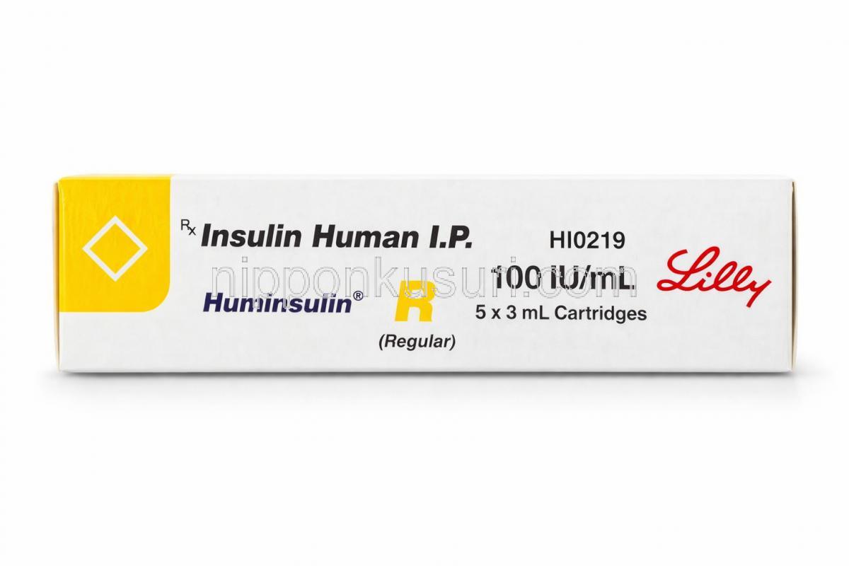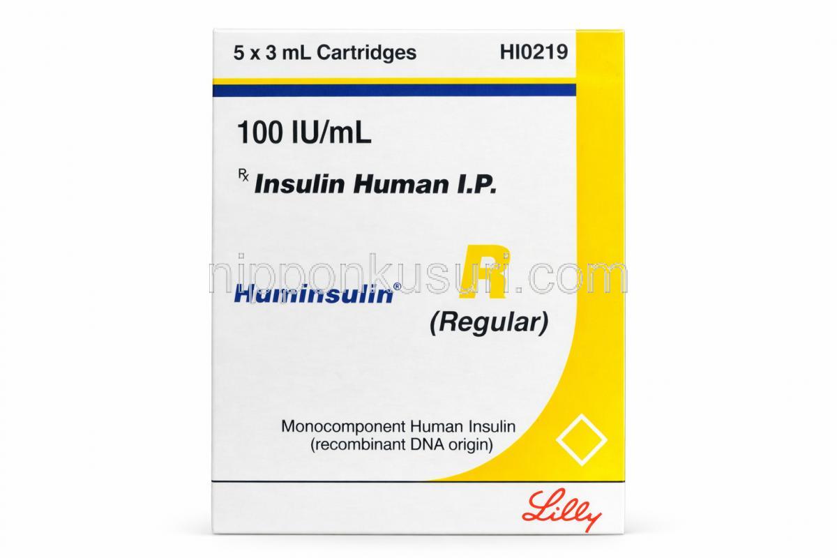 ヒューミンスリン R, インスリン 注射剤 100 IU/mL カートリッジ (イーライリリー), 箱 正面