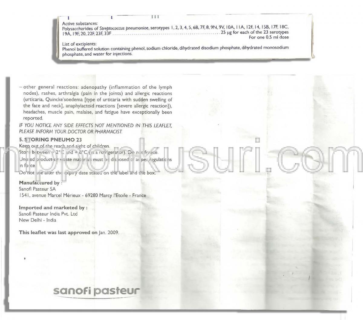 | 有効成分 | 多糖体肺炎球菌ワクチン Polysaccharide Pneumococcal Vaccine |