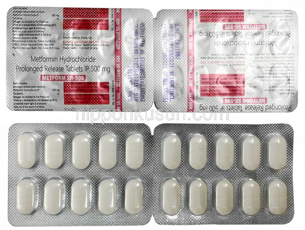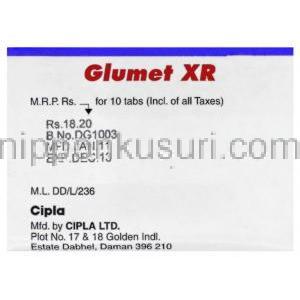 | その他のブランド名 | グルコファージ ジェネリック, エグザメット, Exermet, グルコノーム SR, Gluconorm SR , エクスメットSR, Xmet SR, ワラフェージ SR, Walaphage SR, ゾフォーム, Zoform, Metform SR, メトフォーム SR, その他ジェネリック |