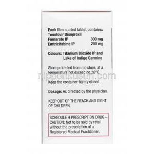 | 有効成分 | テノホビルジソプロキシルフマル酸塩/ エムトリシタビン, Tenofovir Disoproxil Fumarate /Emtricitabine |
