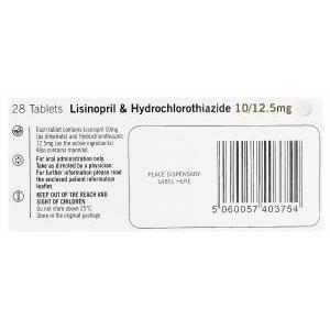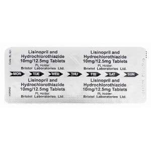 | 含有量 | リシノプリル 5mg/ ヒドロクロロチアジド 12.5 mg, リシノプリル 10mg/ ヒドロクロロチアジド 12.5 mg, リシノプリル 20mg/ ヒドロクロロチアジド 12.5 mg |